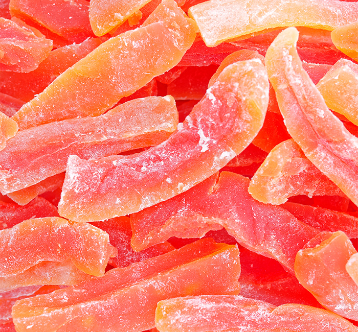 פפאיה,סוכר,חומר משמר E220.SO2,צבע מאכל E129